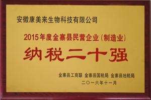 榮獲:2016年度金寨縣民營企業(yè)(制造業(yè))納稅二十強(qiáng)
