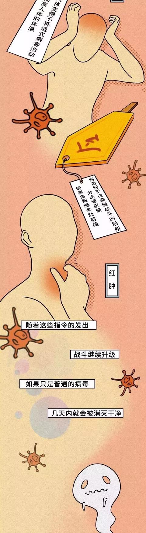 (以下漫畫轉自:國家應急廣播-人體和病毒展開的生死搏斗)