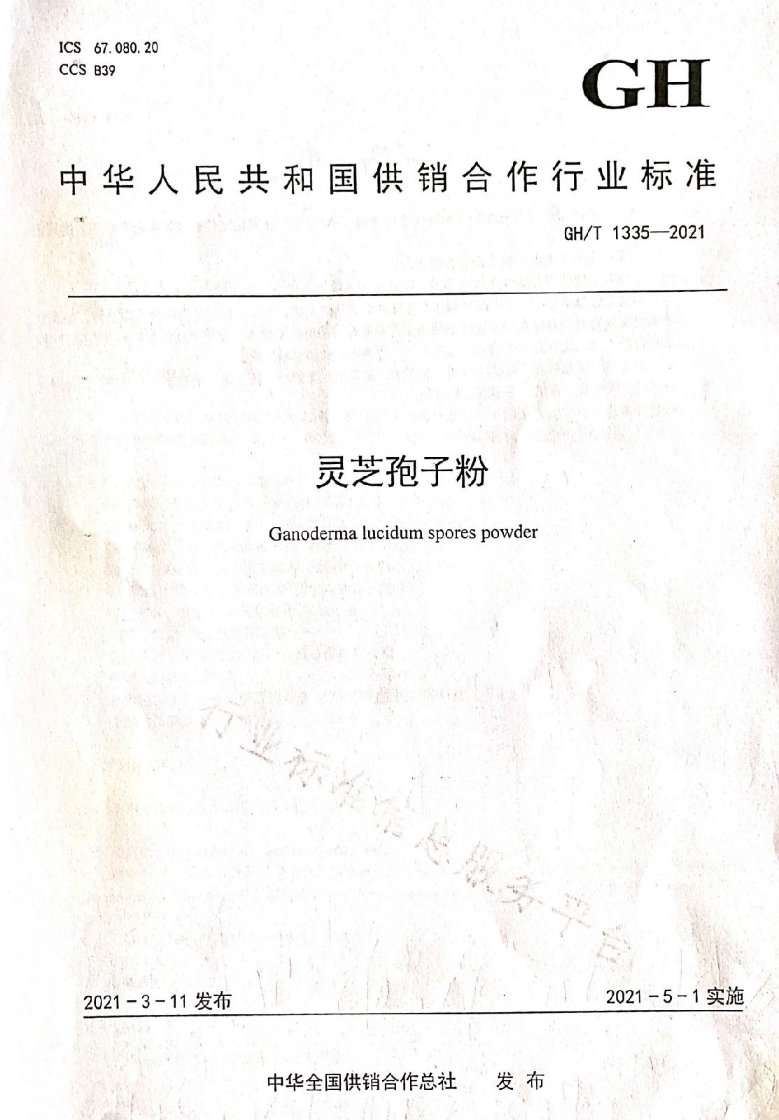 近日,中華全國供銷合作總社發(fā)布“中華人民共和國供銷合作行業(yè)標(biāo)準(zhǔn)”GH/T 1335-2021靈芝孢子粉,2021年5月1日正式實(shí)施。安徽省康美來大別山生物科技有限公司是該標(biāo)準(zhǔn)起草單位之一。