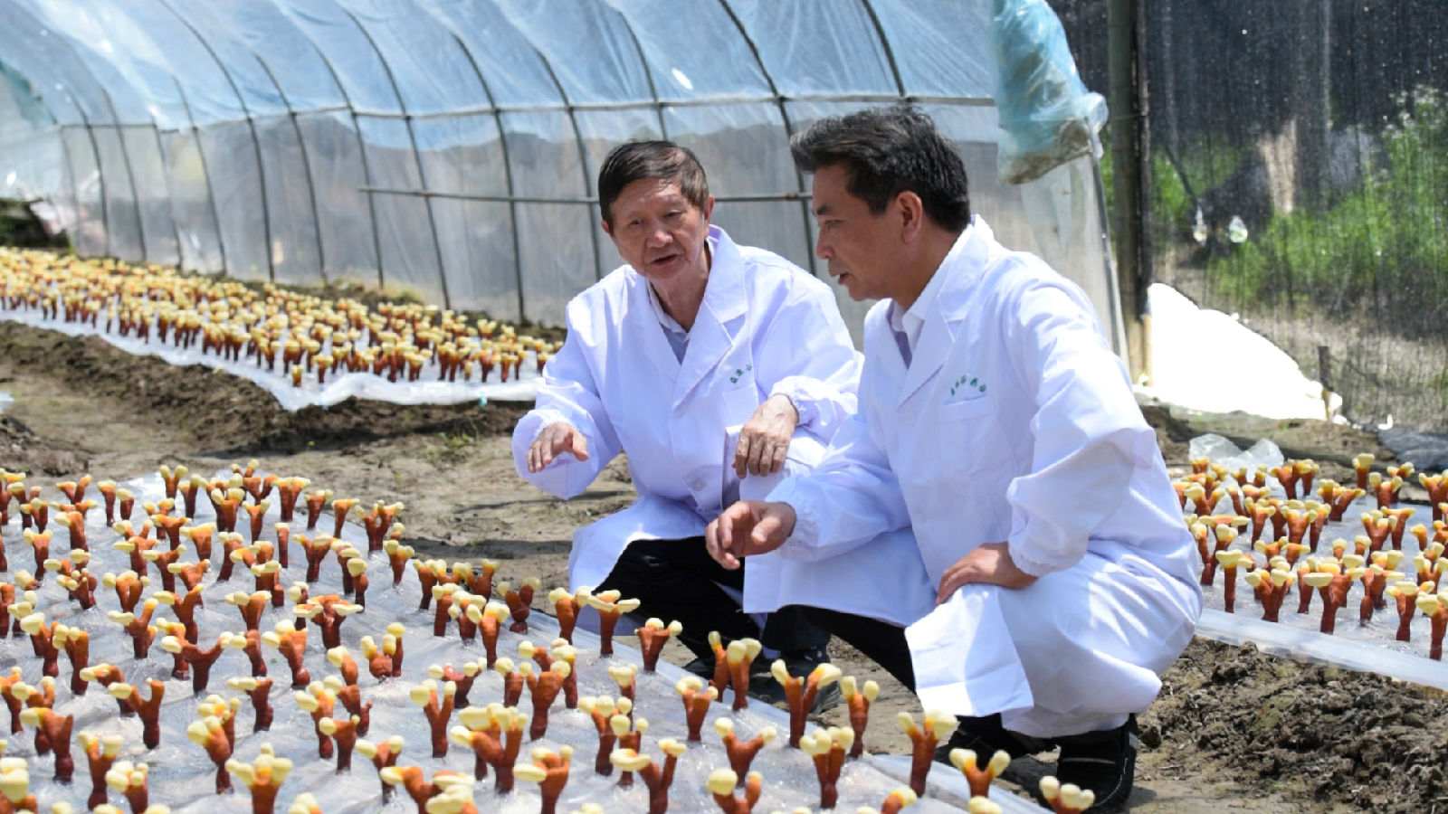 仲夏的大別山,萬物并秀,滿目蒼翠。6月5日上午,康美來集團(tuán)董事長(zhǎng)余春富和靈芝栽培技術(shù)首席科學(xué)家沈業(yè)壽教授一起前往大別山腹地金寨縣果子園鄉(xiāng)龍墩村仿野生有機(jī)靈芝種植基地視察,先前抵達(dá)的基地負(fù)責(zé)人黃總已在基地等候。余董一下車就直奔靈芝大棚。