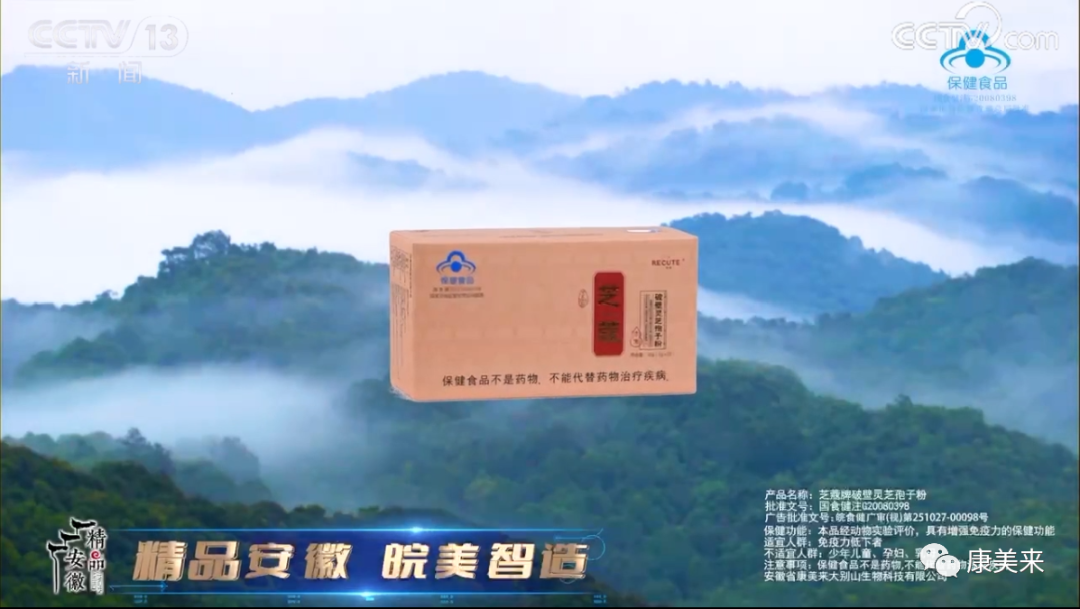 康美來破壁靈芝孢子粉作為政府推薦的“精品安徽”品牌多次登陸央視廣告,今年11月正在CCTV新聞等頻道播出。