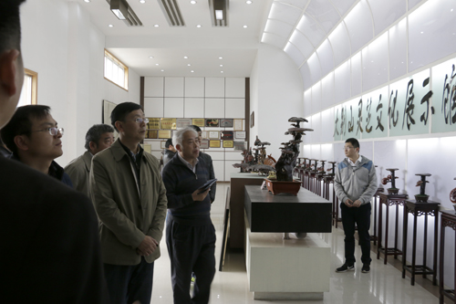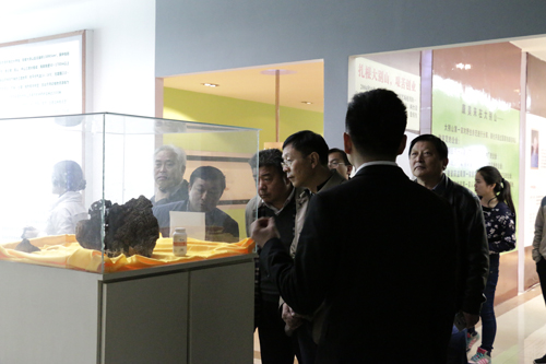 講解員向考察領導介紹公司重量級產(chǎn)品“桑黃子實體”