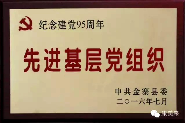 值此建黨95周年之際,中共金寨縣委授予康美來黨支部“先進(jìn)基層黨組織”榮譽(yù)稱號(hào)。
