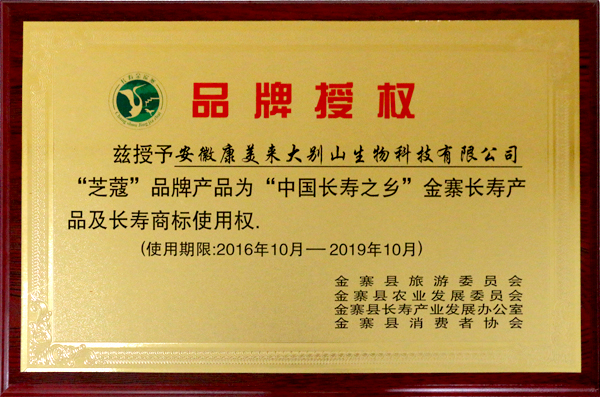 經(jīng)過縣旅游委員會、農(nóng)業(yè)發(fā)展委員會、市場監(jiān)督管理局和長壽產(chǎn)業(yè)發(fā)展辦公室嚴格評選,并經(jīng)縣政府同意,授予安徽省康美來大別山生物科技有限公司“芝蔻”品牌產(chǎn)品為“中國長壽之鄉(xiāng)”金寨長壽產(chǎn)品及長壽商標使用權(quán)。