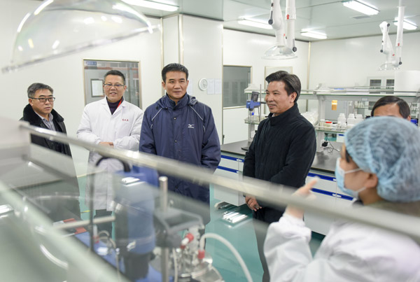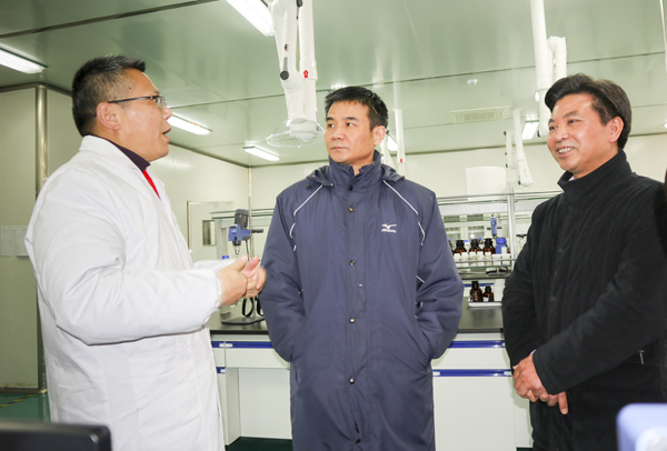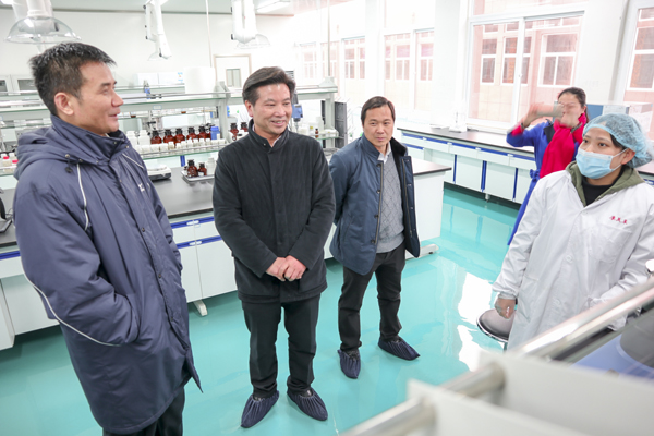 在實驗室王部長還特別關心科技人員,看到研發(fā)主任彭苗正在實驗中,向她詢問來自哪里,畢業(yè)哪個學校,工作幾年了,在六安生活是否習慣,細節(jié)中體現了市領導的關懷。