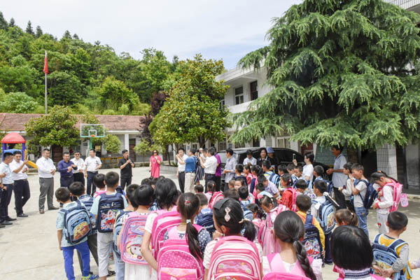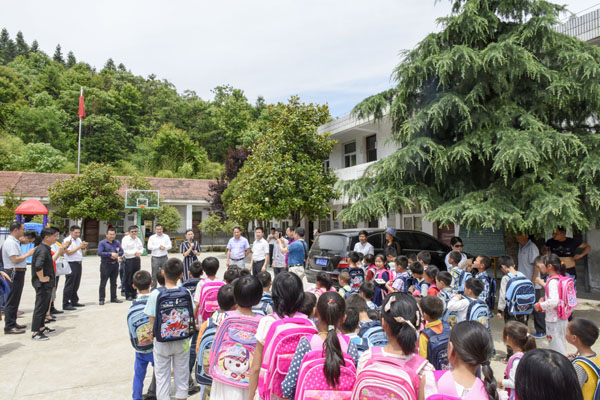 2017年6月8日上午,康美來大別山生物科技有限公司道合體系核心領(lǐng)導(dǎo)一行25人,驅(qū)車百里趕到位于大別山深處的吳家店鎮(zhèn)太平教學(xué)點(diǎn),慰問在這里學(xué)習(xí)的63名山村孩子。
