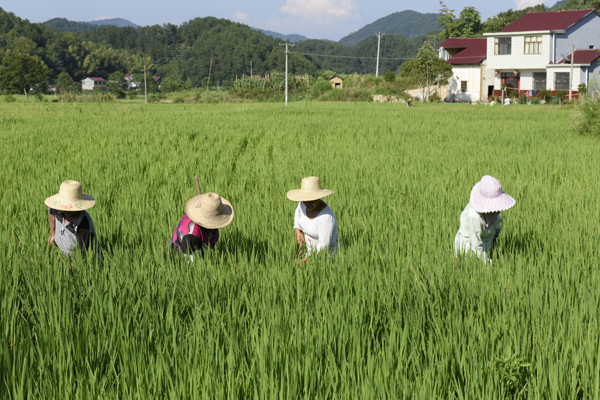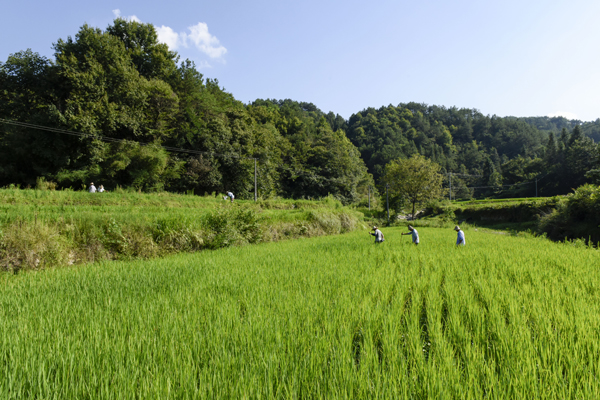 7月23日,余春富董事長和安徽農(nóng)業(yè)大學(xué)專家丁克堅教授、李福寶教授專程前往康美來集團(tuán)云湶谷公司大別山長嶺農(nóng)場,觀察高山有機香稻生長情況,50多位農(nóng)場農(nóng)民工正在稻田里除草,用人工的方法,拔掉每一顆雜草。董事長說,這種原始方法我們雖然人工成本高,但堅決不用除草劑,嚴(yán)格按有機稻標(biāo)準(zhǔn)生產(chǎn)作業(yè)。云湶谷農(nóng)場是康美來會員自家的農(nóng)場,確保高品質(zhì)生產(chǎn),不打農(nóng)藥,不施化肥,不用除草劑。