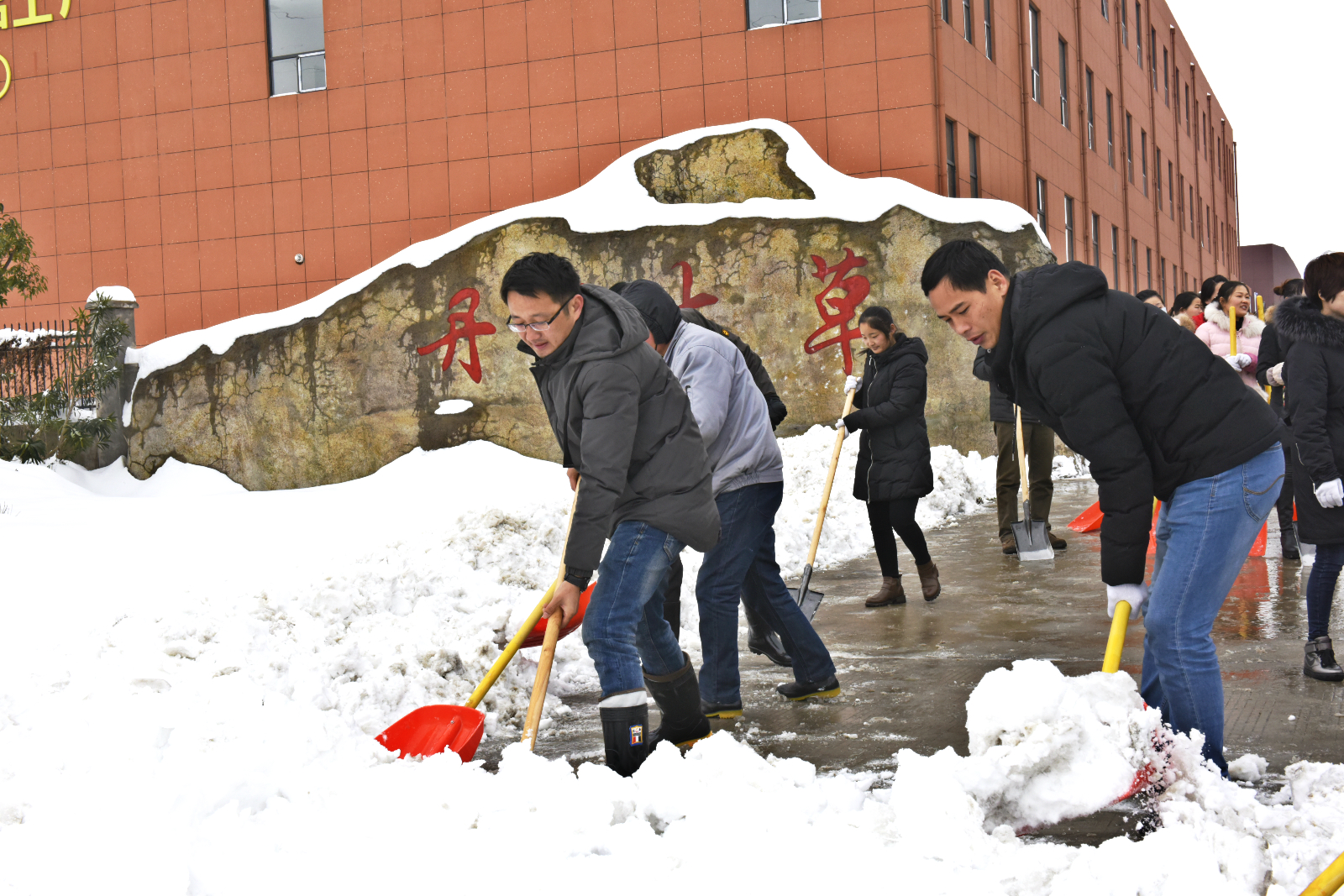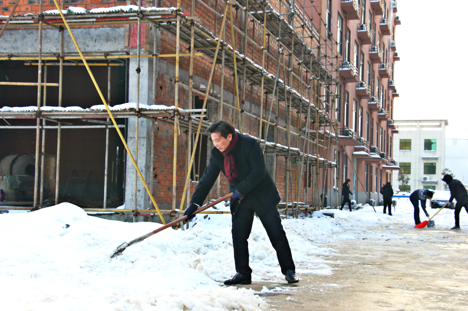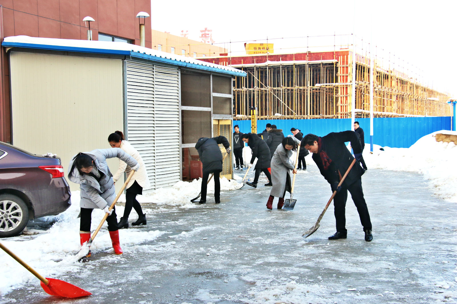 冒著瑟瑟寒風(fēng)進行廠區(qū)道路的掃雪清理工作