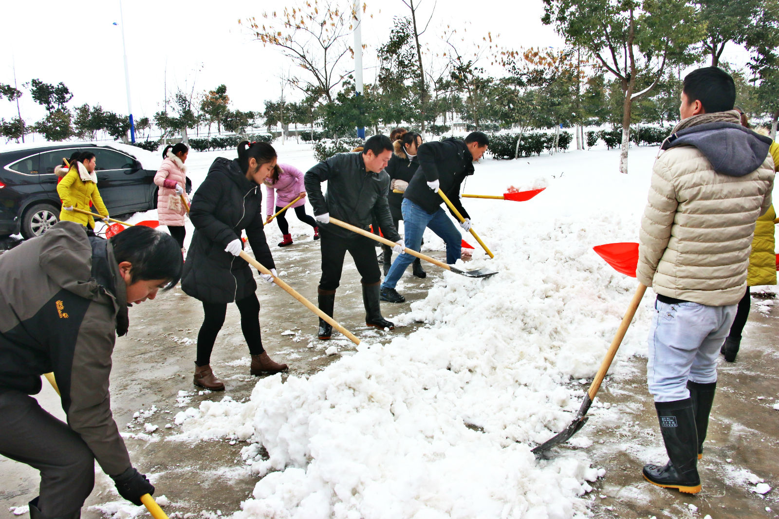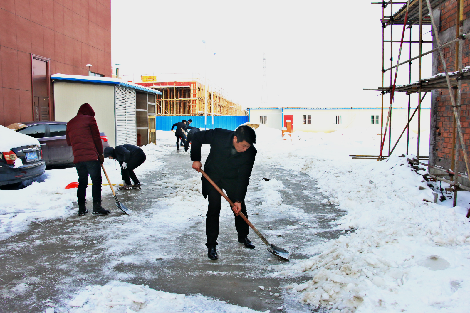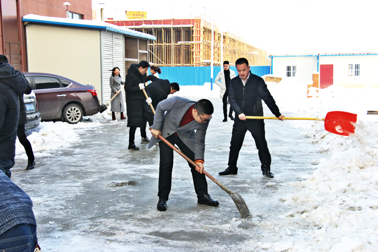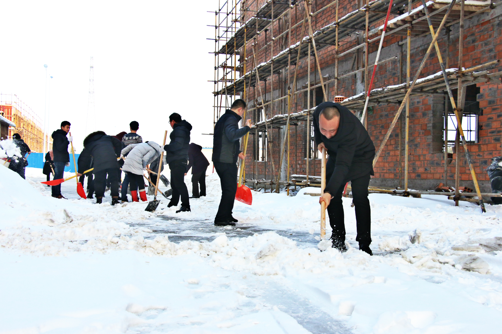 冒著瑟瑟寒風(fēng)進行廠區(qū)道路的掃雪清理工作