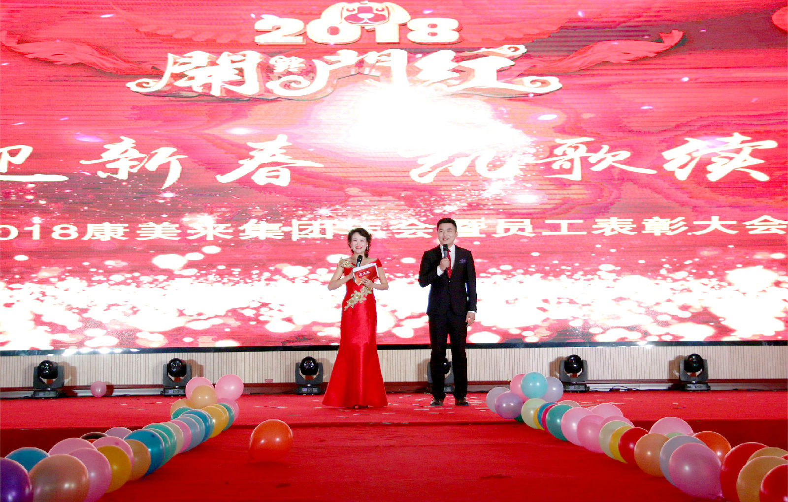 康美來(lái)集團(tuán)董事長(zhǎng)余春富和夫人趙欣攜公司全體高管與康美來(lái)全體家人,齊聚一堂,辭舊迎新。