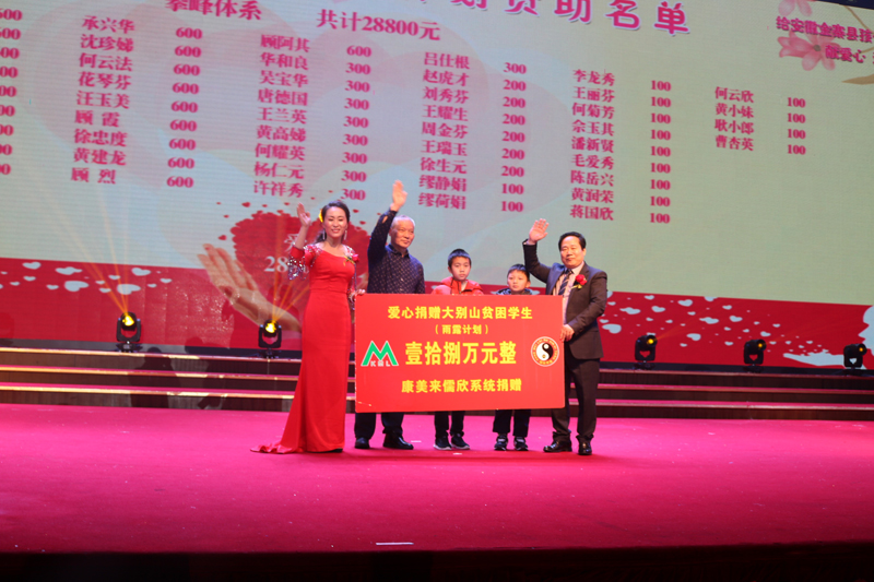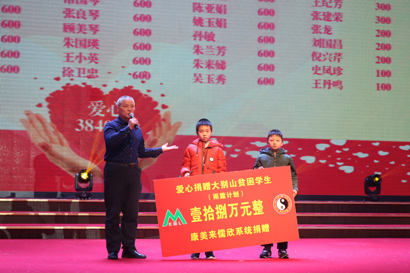 1月5日--6日,康美來(lái)儒欣系統(tǒng)舉辦扶貧公益活動(dòng),向金寨縣沙河中心小學(xué)、金寨縣長(zhǎng)嶺鄉(xiāng)勝利教學(xué)點(diǎn)、金寨縣長(zhǎng)嶺鄉(xiāng)洪畈教學(xué)點(diǎn)、金寨縣燕子河樹(shù)林教學(xué)點(diǎn)、金寨縣吳家店鎮(zhèn)太平教學(xué)點(diǎn)、金寨縣龍?zhí)督虒W(xué)點(diǎn)等學(xué)校貧困學(xué)生捐款18萬(wàn)元。