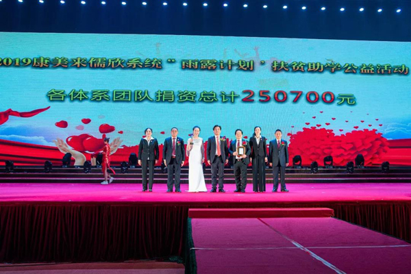 2019年12月30日,康美來(lái)儒欣經(jīng)銷商團(tuán)隊(duì)在江陰召開(kāi)2019年度“雨露計(jì)劃”扶貧助學(xué)公益活動(dòng)暨表彰盛典。