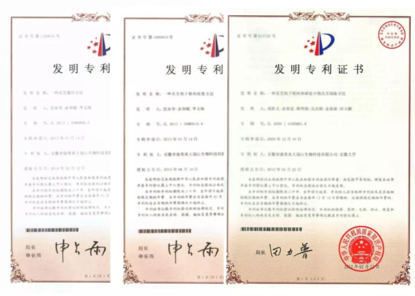 康美來高度重視自主科技創(chuàng)新,十多年來,公司科研團(tuán)隊(duì)與科研院所開展產(chǎn)學(xué)研合作,在以沈業(yè)壽教授為首席科學(xué)家的技術(shù)攻關(guān)下,在靈芝的栽培、孢子粉的采集、孢子粉的加工三個(gè)關(guān)鍵環(huán)節(jié)進(jìn)行科技創(chuàng)新,取得三項(xiàng)國家發(fā)明專利,連續(xù)多年榮獲國家高新技術(shù)企業(yè),安徽省專精特新中小企業(yè)。自2005年起,余春富、沈業(yè)壽、李文海三人合作,帶頭改變了皖西大別山靈芝產(chǎn)業(yè)的落后狀況,實(shí)現(xiàn)了產(chǎn)業(yè)升級和高質(zhì)量發(fā)展,科技成為第一生產(chǎn)力。