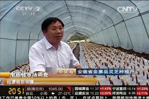 五、縣政府部門指定康美來基地作為金寨縣靈芝種植基地的代表,向央視推薦。李文海是種植能手的代表。