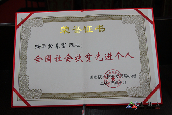 余春富董事長獲“全國社會扶貧先進個人”榮譽證書