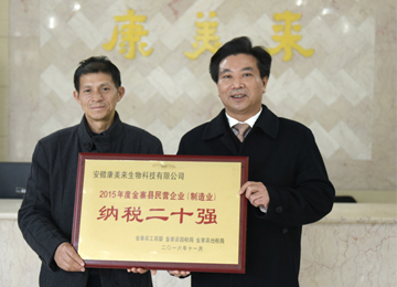 金寨縣授予康美來(lái)大別山生物科技 “2015年度金寨