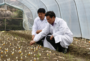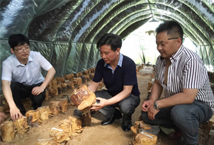 金寨縣農(nóng)發(fā)委領(lǐng)導(dǎo)及產(chǎn)業(yè)中心負(fù)責(zé)人一行視察指導(dǎo)康美來(lái)有機(jī)靈芝種植基地